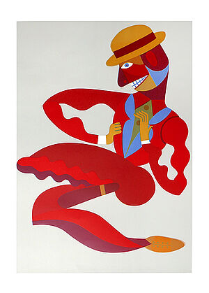Farblinolschnitt: ohne Titel (Mann mit Melone)