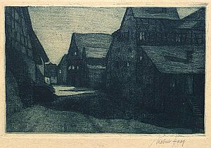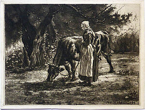 Ölgemälde: ohne Titel (Spätsommerliche Landschaft mit Feldweg und figürlicher Staffage)