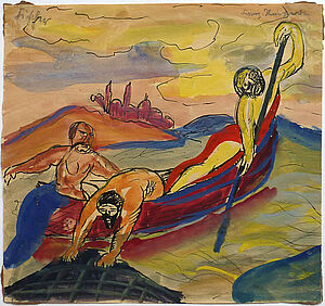 Expressive, aquarellierte Federzeichnung: "Fischer" um 1920