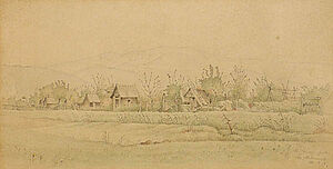 Kolorierte Bleistifttzeichnung: "Stichlinger Gärten" von 1958