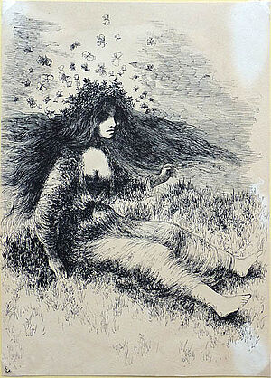 Aquarellierte Tuschezeichnung: ohne Titel (Im Schlaf?)
