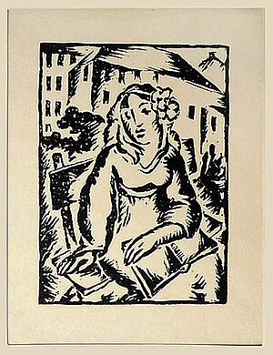 Neusachlicher Holzschnitt: ohne Titel (sitzender Mann) von 1929.