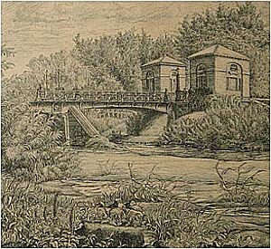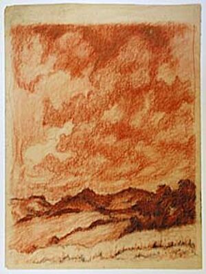 Rötelzeichnung: ohne Titel (hügelige Landschaft)