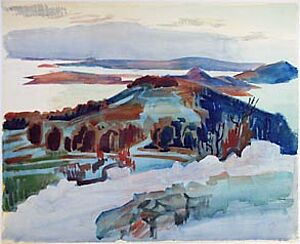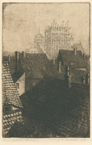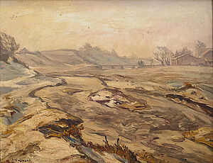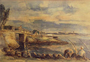 Flusslandschaft mit Brücke (Donau bei Linz?)