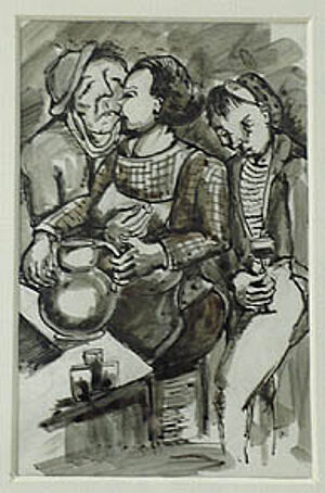 Kohlezeichnung: o.T. (in der Barbierstube)
