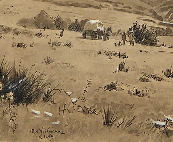 zu Hans Richard von Volkmann: der bedeutende Landschaftsmaler und Graphiker wurde 1860 in Halle als Sohn des berühmten Chirurgen Richard von Volkmann geboren. Er studierte von 1880 bis 84 an der Düsseldorfer Akademie bei Hugo Crola, Heinrich Lauenstein, Peter Janssen sowie Eduard von Gebhardt und war 1888 bis 92 Meisterschüler von Gustav Schönleber in Karlsruhe, wo er dann über viele Jahre freischaffend tätig war. Er war Mitglied der Schwälmer Willingshäuser Malerkolonie, der ältesten Künstlervereinigung in Europa. Auch als Illustrator machte er sich einen Namen, so bebilderte er das bekannte Märchenbuch seines Vaters „Träumereien an französischen Kaminen“ und die für Hallenser wichtigen Bücher „Alt Halle“ und „Verschwundenes und Erhaltenes aus der alten Salzstadt Halle“. Der Künstler verstarb 1927 in Halle.