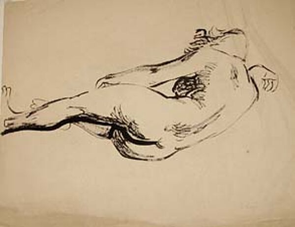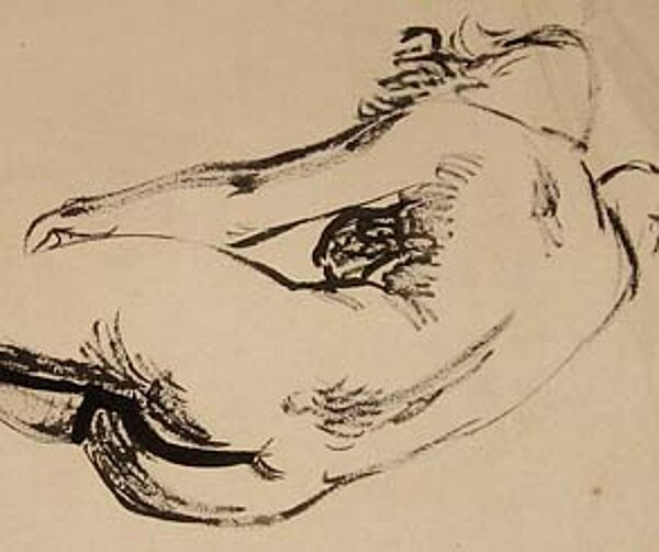 Tuschezeichnung: Liegender weiblicher Rückenakt