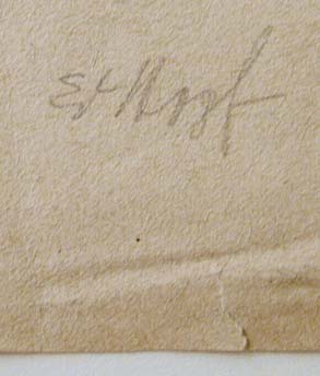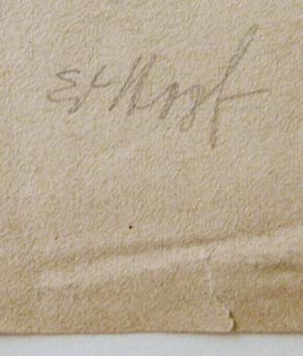 Tusche auf chamoise-farbenem kräftigen Papier. Blattgröße ca. 58,5 x 46 cm. Etliche Knickspuren, zwei seitliche Einrisse, der größere 3,5 cm, zudem wirkt das Papier im Randbereich leicht verschmutzt und z.T. gebräunt. Wohl 20er, 30er Jahre.