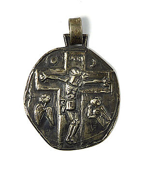 Versilberter Bronze-Anhänger mit Madonnen-Relief