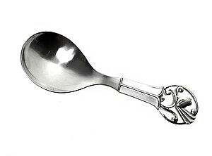 Silberner Zuckerlöffel mit Vogelmotiv