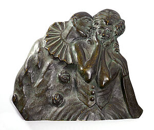 Bronzerelief: Pierrot und Columbine