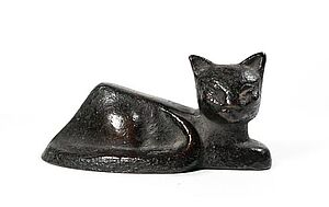 Bronzefigur: Liegende Katze