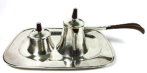 Zinnschale / kleiner Tafelaufsatz mit figürlichem Schmuck