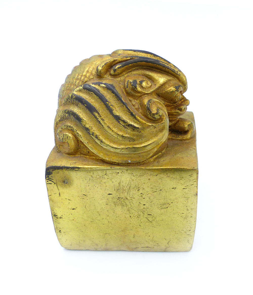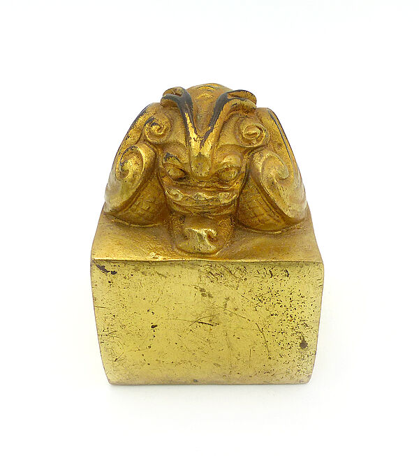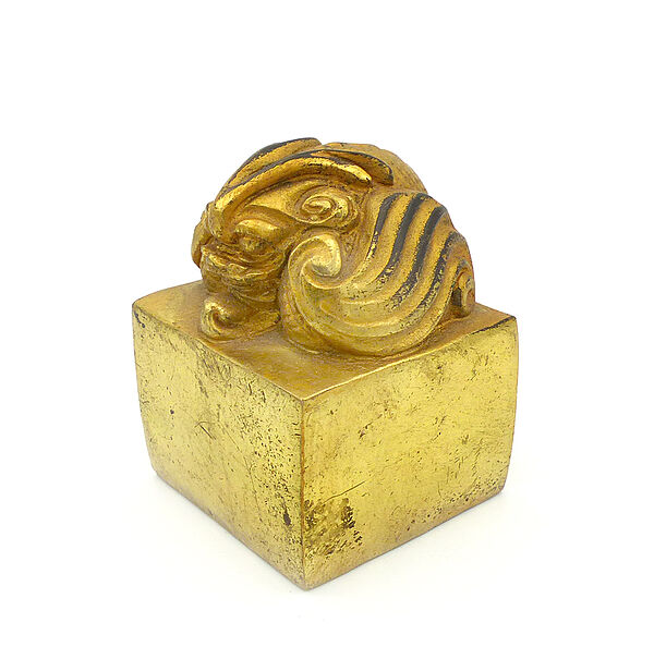 Prunksiegel aus vergoldeter Bronze mit einem geflügelten Löwen (Pixiu)