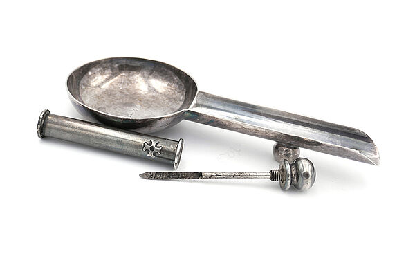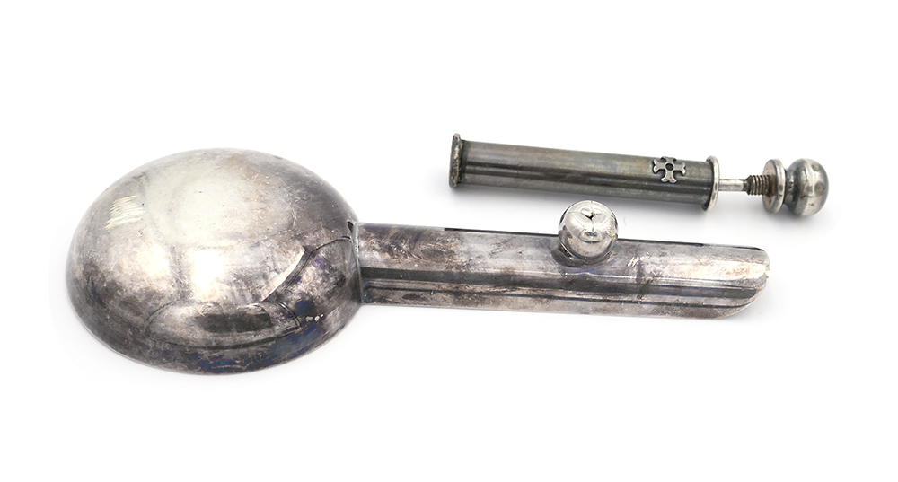 Silberne Pfeifenablage und silberner Pfeifenstopfer