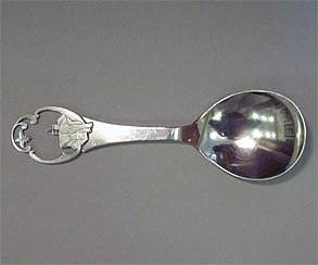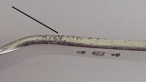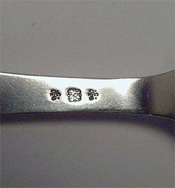 Silber (830), Stil mit dekorativem Motiv, L. 21,2cm; seitlich des Stils kleine Einkerbungen, Marke nicht gedeutet, Dänemark, 1920er