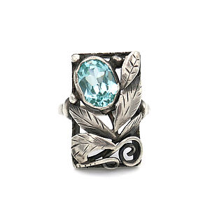 Silberner, teilvergoldeter, steinbesetzter Ring in Form eines Löwenkopfes