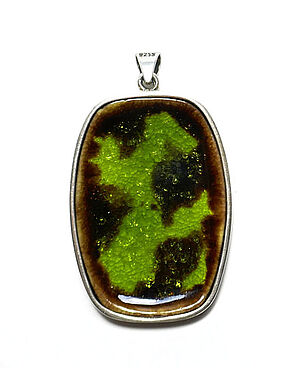 Silberner Anhänger mit expressiv glasierter Keramikplatte