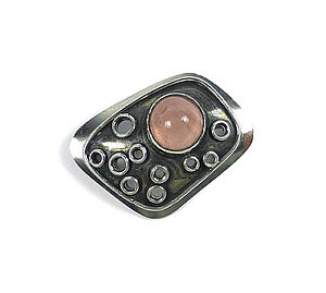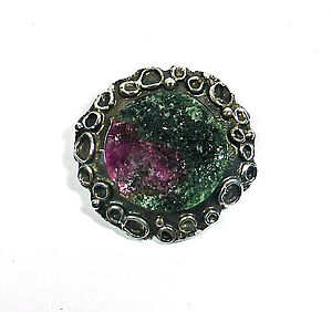 Expressive Silberbrosche mit grünem Granat