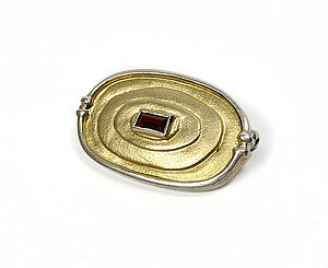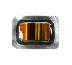 Silberne Brosche mit zwei Bernstein-Cabochons