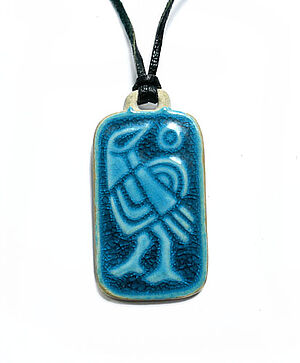 Keramik-Anhänger mit Vogeldarstellung (an Lederband)
