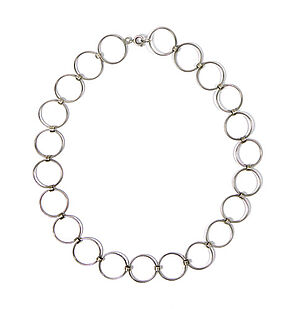 Emaillierte Silberbrosche mit geometrischem Dekor