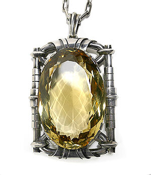 Prachtkette mit sehr großem Silberanhänger mit Citrin