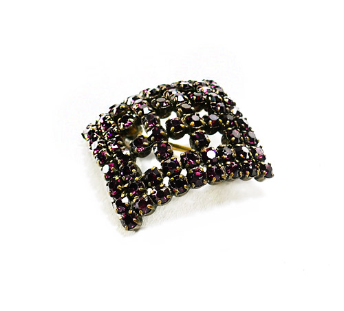 violette Glassteine, gewölbte Form, Seitenlänge 2,7cm, ungemarkt, 1930er