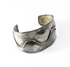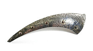 Silberne Brosche mit Messingnieten in Form eines Schweifes