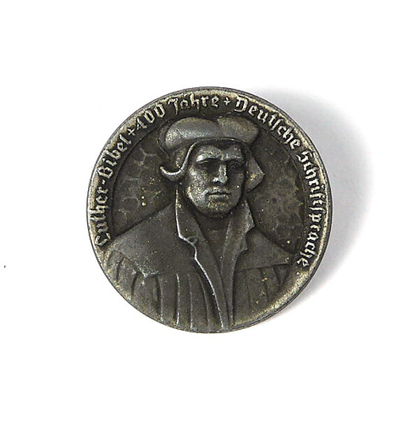 Medaillenanstecker von Martin Luther auf das 400jährige Jubiläum der Bibelübersetzung 1934