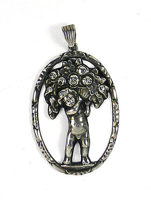 Silberner Anhänger mit Blumenkorb-tragendem Putto