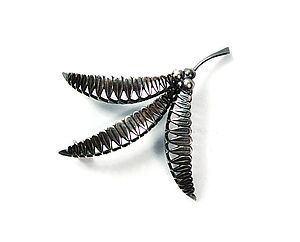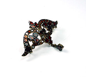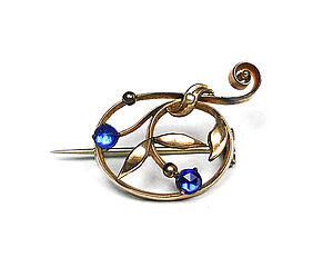 Vergoldete Brosche mit Saphiren und Perle in Form eines Zweiges