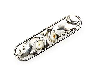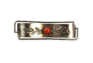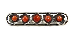 Silberne Brosche mit Koralle in Form einer Blüte