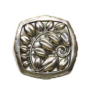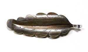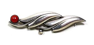 Silberne Brosche mit Koralle in Blätterform