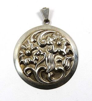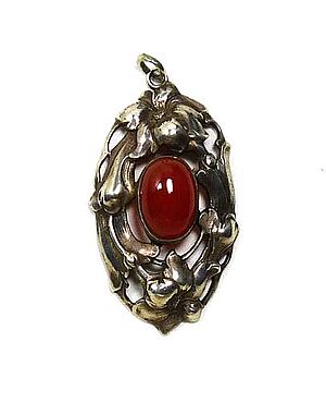 Silberner Anhänger mit Karneol und Blütenelementen
