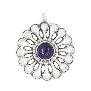 Silberner Anhänger in Form einer stilisierten Blüte mit Amethyst