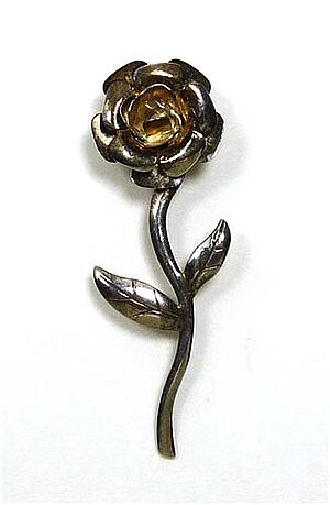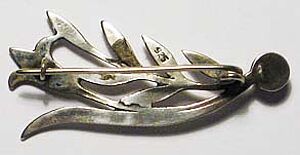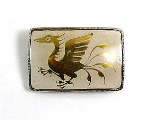 Silberne Brosche mit Keramikplatte mit Drachenmotiv