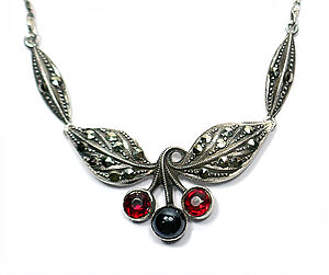 Silbernes Collier mit Schmucksteinen und Markasiten