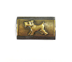 Kleine Messing Brosche bzw. Spange mit Hund-Darstellung