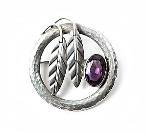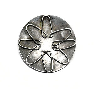 Neusachliche Silberbrosche mit abstrahiertem Blütendekor