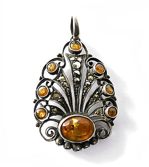 Silberner Anhänger mit orange-farbenen Schmucksteinen