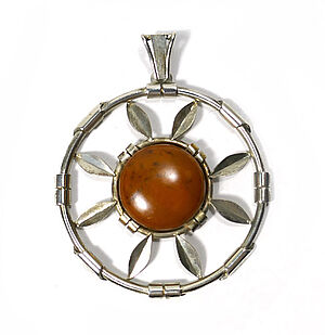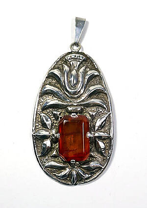 Silberner Anhänger mit Bernstein in Form einer Blüte