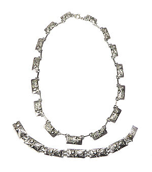 Silbernes Collier und silbernes Armband mit floralem Dekor