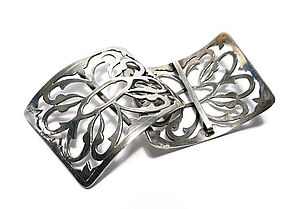 Silberne Brosche mit grünem Schmuckstein
