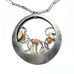 Florale Silberbrosche mit Korallen
