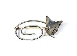 Silberne Brosche in Katzenform