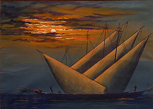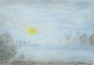 Aquarell: ohne Titel (Landschaft mit Abendsonne)