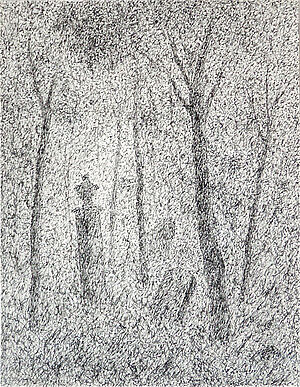 Federzeichnung: ohne Titel (Friedhof in der Dämmerung)