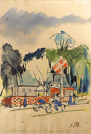 Expressive, aquarellierte Federzeichnung: "En gammel en fra korumshavne" (?)
