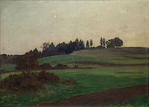 Ölgemälde: "Abendlandschaft mit der Mondsichel"